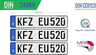3X KFZ Kennzeichen Standard Größe EU520x110x1mm Autokennzeichen Wunschkennzeichen Saisonkennzeichen Nummernschild PKW Kennzeichen Fahrradträger Anhänger Elektro Auto Oldtimer