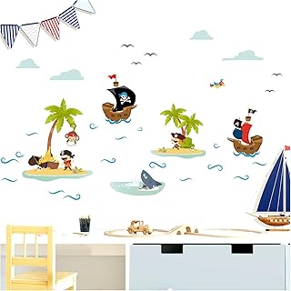 Little Deco Aufkleber Piraten Schiffe & Schatzinsel I Wandbild S - 92 x 42 cm (BxH) I Wandtattoo Kinderzimmer Junge Babyzimmer Deko Wandaufkleber Baby Sticker DL332