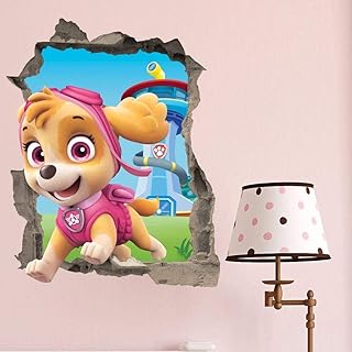 BAOWANG Wandsticker Paw Patrol Skye Wand Riss Kinder Jungen Mädchen Schlafzimmer Vinyl Aufkleber Wandaufkleber Geschenk Weihnachten