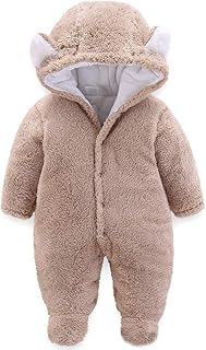 Baby Winter Fleece Overall Mit Kapuze Mädchen Jungen Schneeanzüge Warm Strampler Outfits Khaki 0-3 Monate (59/44)