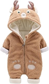 Baby Strampler Kapuze Jungen Mädchen Fleece Overall Cartoon Rentier Schneeanzug Babykleidung Winter Warme Outfits Weihnachten Jumpsuit 9-12 Monate Braun