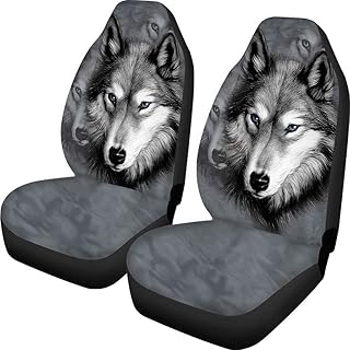 Showudesigns Wolf Autositzbezüge für Herren und Damen, Vordersitzschutz, vollständiges Set von 2 Stück, Universalgröße für Auto, LKW oder SUV, Zubehör, kühles Grau