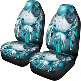 Woisttop Dreamcatcher Wolf Autositzbezüge Fahrzeugdekoration Vordersitz Schutzbezug Komplettset von 2 Stück passend für die meisten Pkw, Lkw, SUV und Van