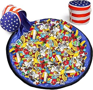 Spielzeug-Aufbewahrungskorb mit Spielmatte für Kinder, Geschenk zum 4. Juli, tragbar, faltbar, Segeltuch, Organizer für Schlafzimmer oder Klassenzimmer, amerikanisches patriotisches Design