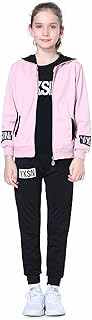 Kinder Mädchen 3tlg Jogginganzug Trainingsanzug Sportanzug Freizeitanzug Outfit-Set Bekleidungsset Zweiteiler(Sweatshirt+Sweathose+T-Shirt)